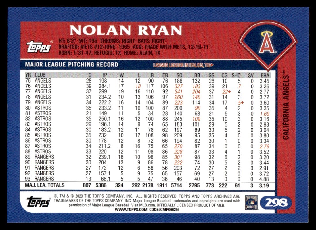 | NOLAN RYAN 2022 Topps Archives 2003 Card Design #298 Texas Rangers |