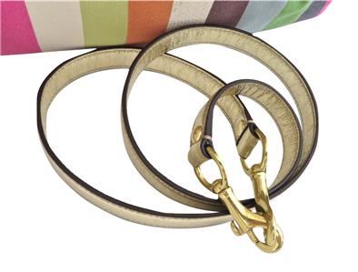 *Gold metallic leather 40" shoulder/crossbody strap with polished brass dogleash clasps on each side