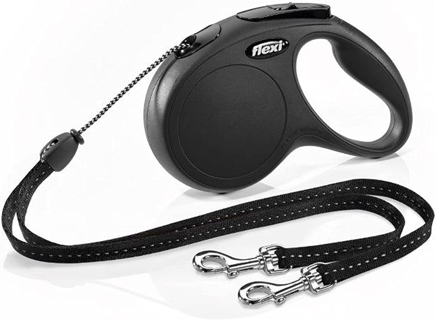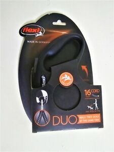 Flexi New Classic Retractable Cord Dog Leash Duo For 2 Small Dogs 16-Foot Black