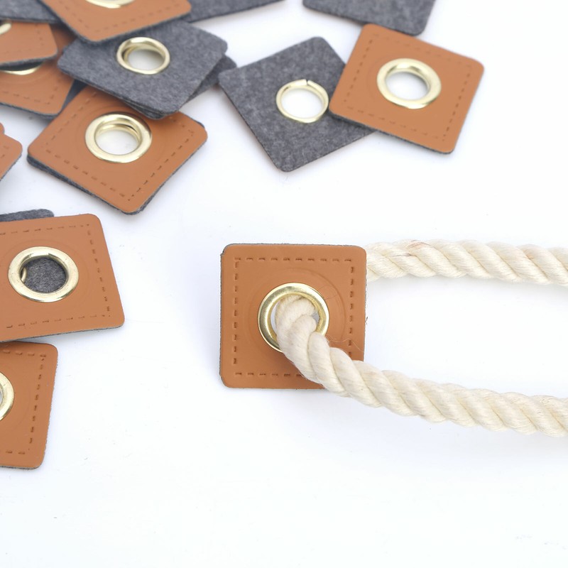 30 pcs PU leather sew on badges patch labels inner 8mm metal brass eyelets grommets.