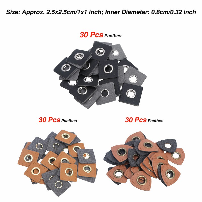 30x Clothing Patches Sew On Jacket PU Leather Patch Labels Badges w/Grommets 8mm