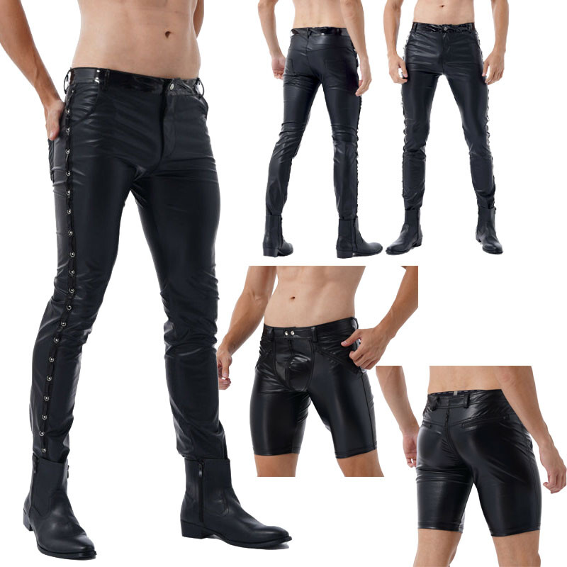 Men matte PU leather pants design with pockets and middle waist, soft lining ensuring comfy wear all the day.