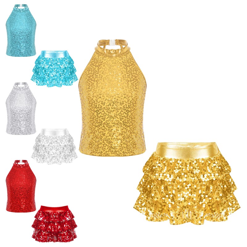 Girls Outfits Teens Costume Gymnastic Dancewear Tutu Uniform Kids Skirt SequinUSD 7.99