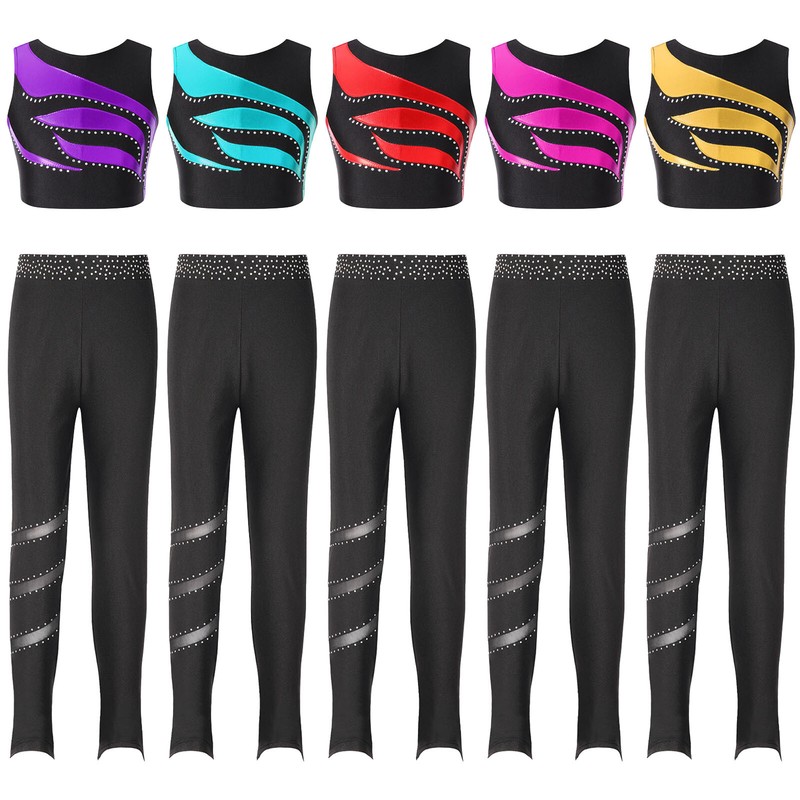 Kids Girls Leotard Workout Set Suit Outfit Skating Pants Gymnastics DancewearUSD 15.09
