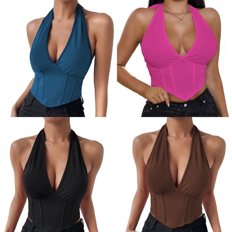 Women's Blouse Casual Vest Raves Tank Tops Festival Undershirt Lace-Up HalterUSD 6.59