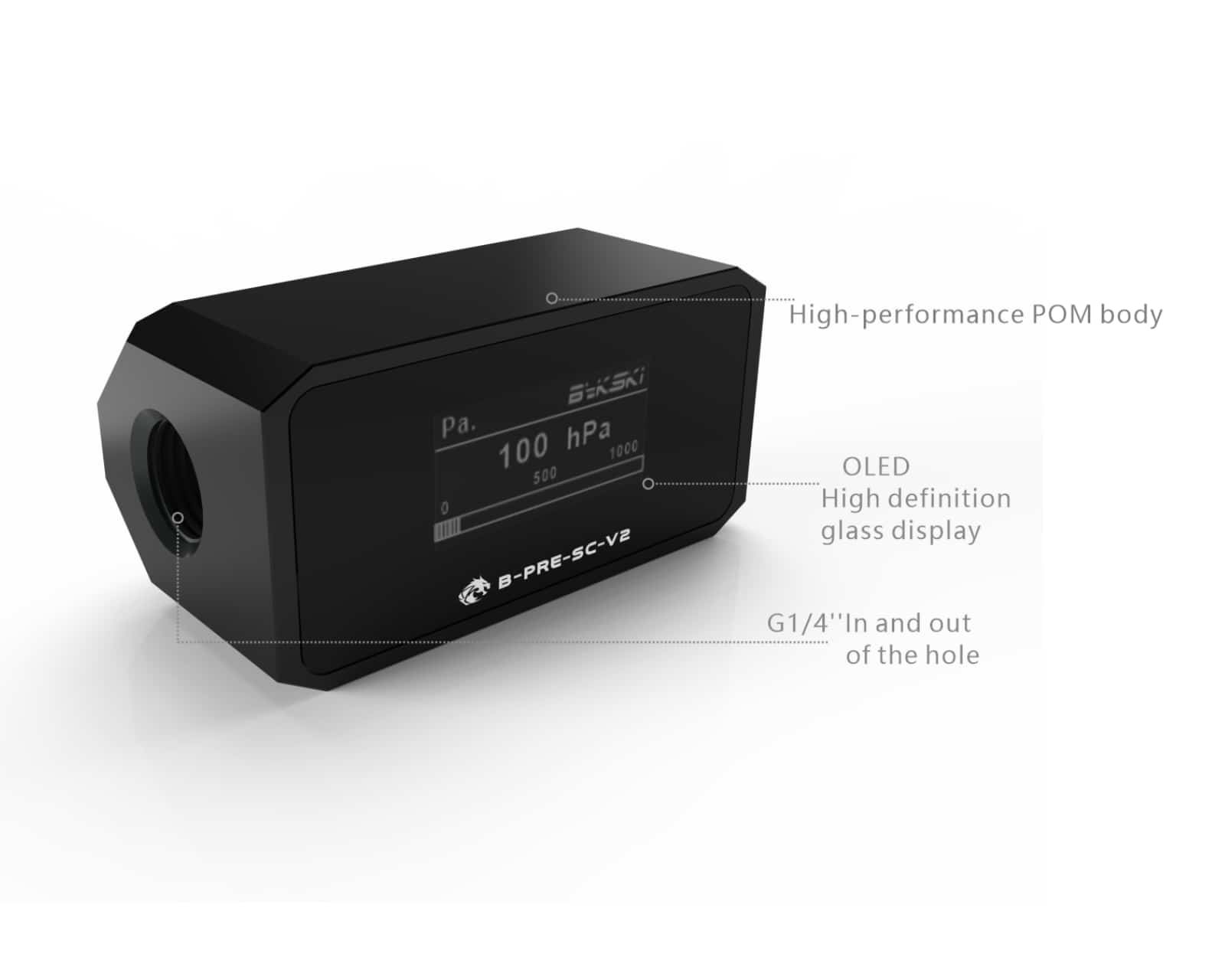 The main function of the Bykski pressure gauge is to clearly monitor the internal pressure of the water cooling system, effectively understand the operation of the water cooling system, and immediately control the safety limit. This module monitors the pressure in real-time and displays pressure changes as well.