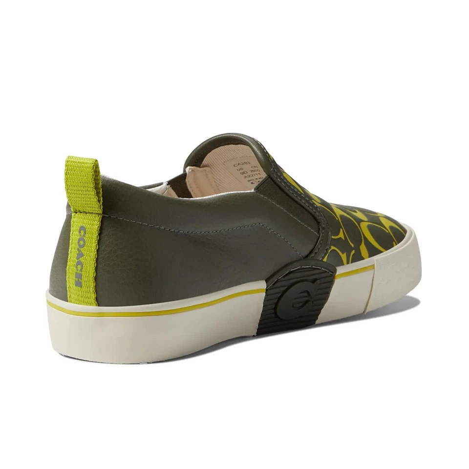 Coach Men's Green Leather Skate Pebble Slip on Rubber Sole Flat Shoes Size 10.5D