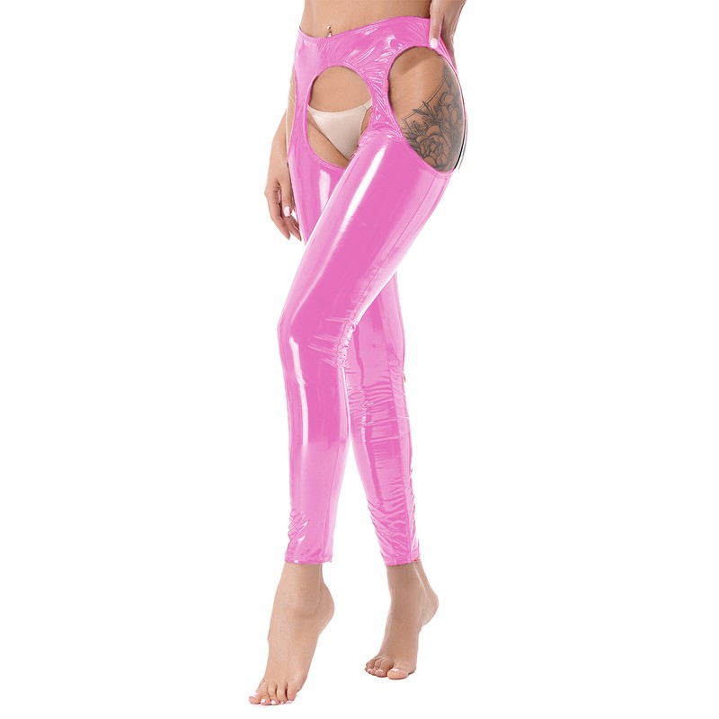 Womens Underpants Shiny Trousers Tummy Control Pants Open Crotch Tights StageUSD 7.99