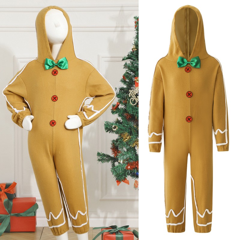 An one-piece gingerbread man costume for child size, perfectly to dress up kids more adorable at Christmas