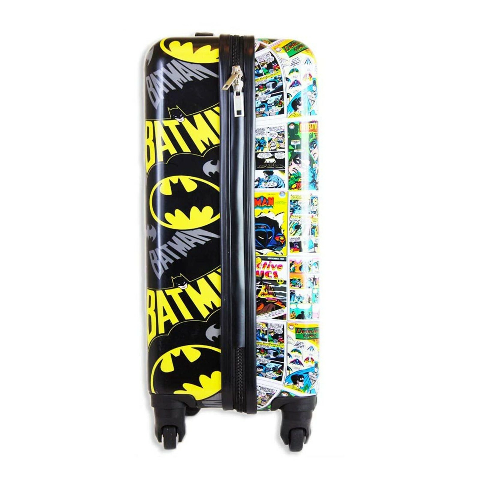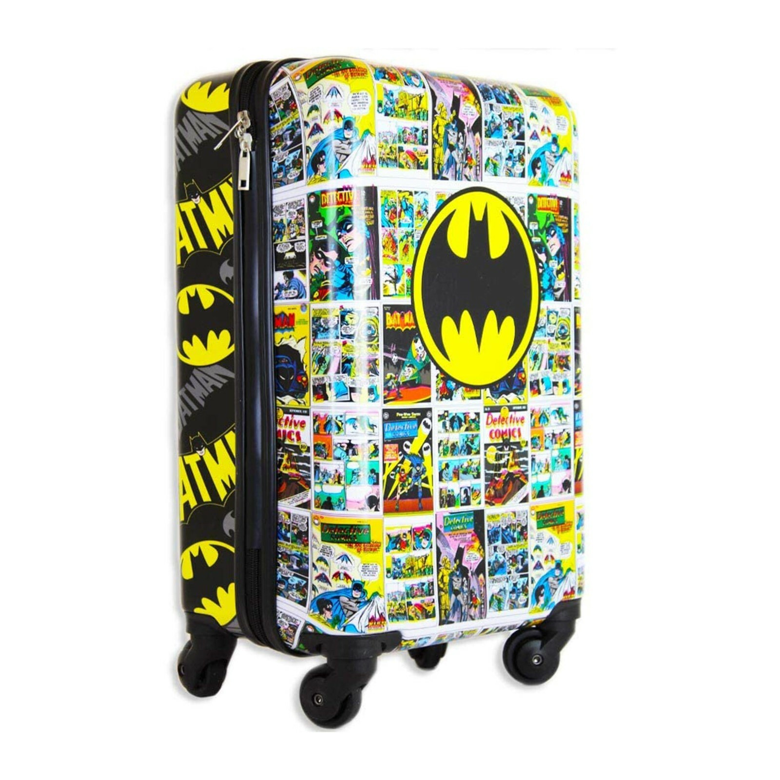 We are providing exclusive Batman tween Spinner cases that allow for more packing space than traditional kid's luggage, while still remaining extremely lightweight. This 20 Inches long kids travel suitcase allows you to pack everything that your child will need while keeping the overall weight at a minimum. Awesome Batman suitcase has all-over print, different graphics on front and back. Bright color and exclusive design of this comic luggage will sure to catch your kid's attention. The 360° spinner wheels deliver all the durability and smoothness of our full-sized spinner luggage, yet are in a kid-friendly size so they will have no problem maneuvering their luggage through the airport. It has a double zipper closure system, that when opened reveals a fully lined interior as well as a zippered divider for internal organization. These cases are also designed to be carry-on approved, saving you unwanted baggage fees while traveling by plane. Perfect gift for a kid on the move.