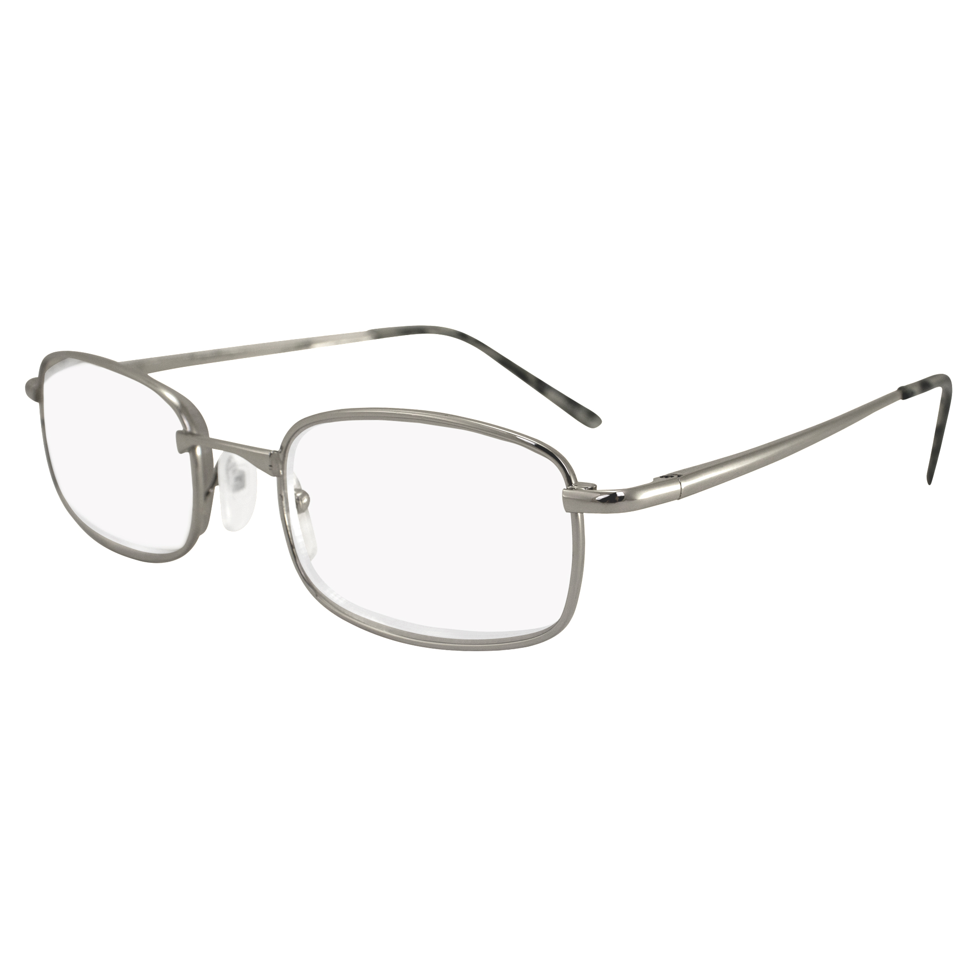 If you're having trouble reading, whether it be on your phone, a book, what have you, there's a solid chance you might need some reading glasses that will help magnify the lettering to help you see better. Stop settling for blurry vision and wear these High-Powered Premium Reading Glasses for Men with +5.00 Magnification for better vision. The frame is made of tough metal material that’s also lightweight, making these mens glasses easier to wear throughout the day. The light feeling and silicone nose pads also keep you from needing to readjust the eyewear since it’s less likely to slip down your nose. Plus, these eyeglasses for men feature aspheric clear lenses with excellent optical qualities that greatly reduce this undesired magnification and minification effects, so the world looks more natural to the wearer, and the wearer's eyes look more natural to everyone else. This offers better visual clarity especially when you have difficulty focusing when reading, drawing, sewing, or seeing the text on a mobile phone. These readers’ classic style rectangular silver frames combined with a sleek temple design will certainly make a statement if you like your eyewear to stand out. This means you can wear them all day and not just when you need to read something. And for convenience and aesthetics, each pair comes with a quality black case for safe storage.