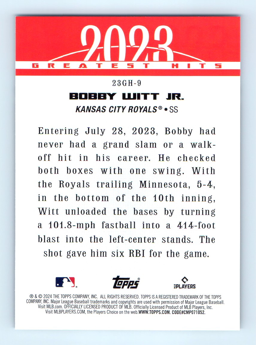 | 2024 Topps Series 1 Greatest Hits Bobby Witt Jr. Kansas City Royals #23GH-9 |