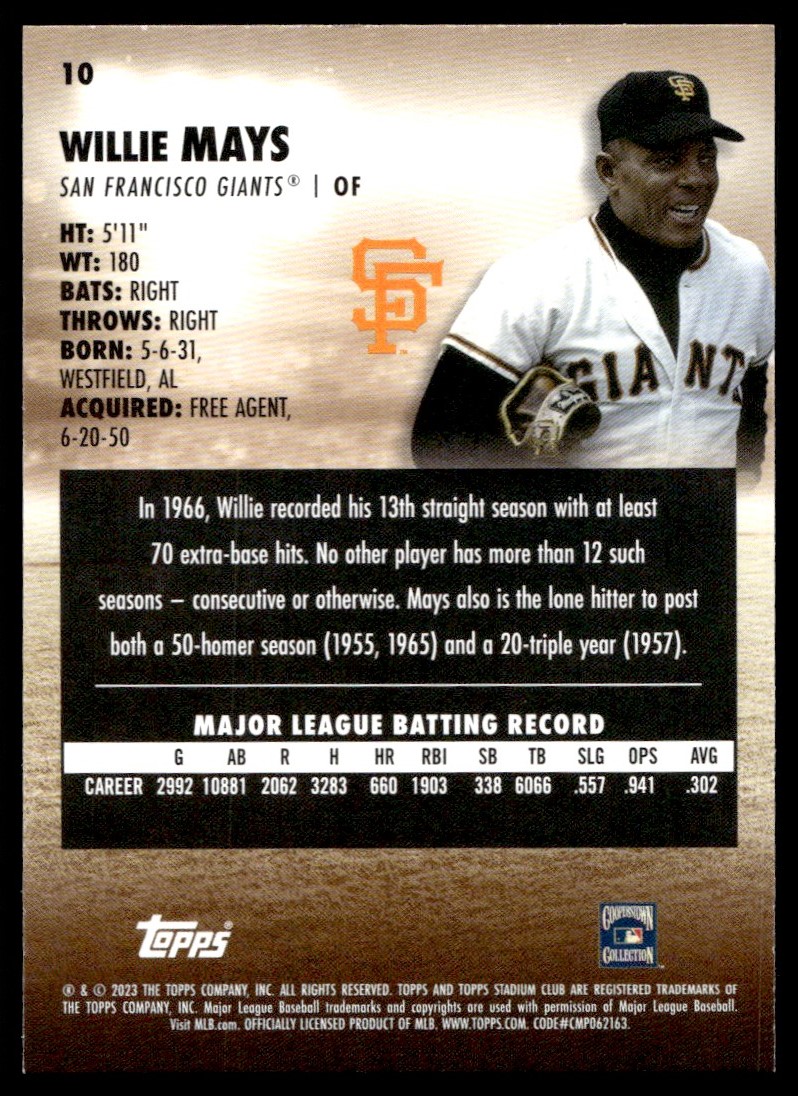 | Willie Mays 2023 Stadium Club Card Legend #10 San Francisco Giants |