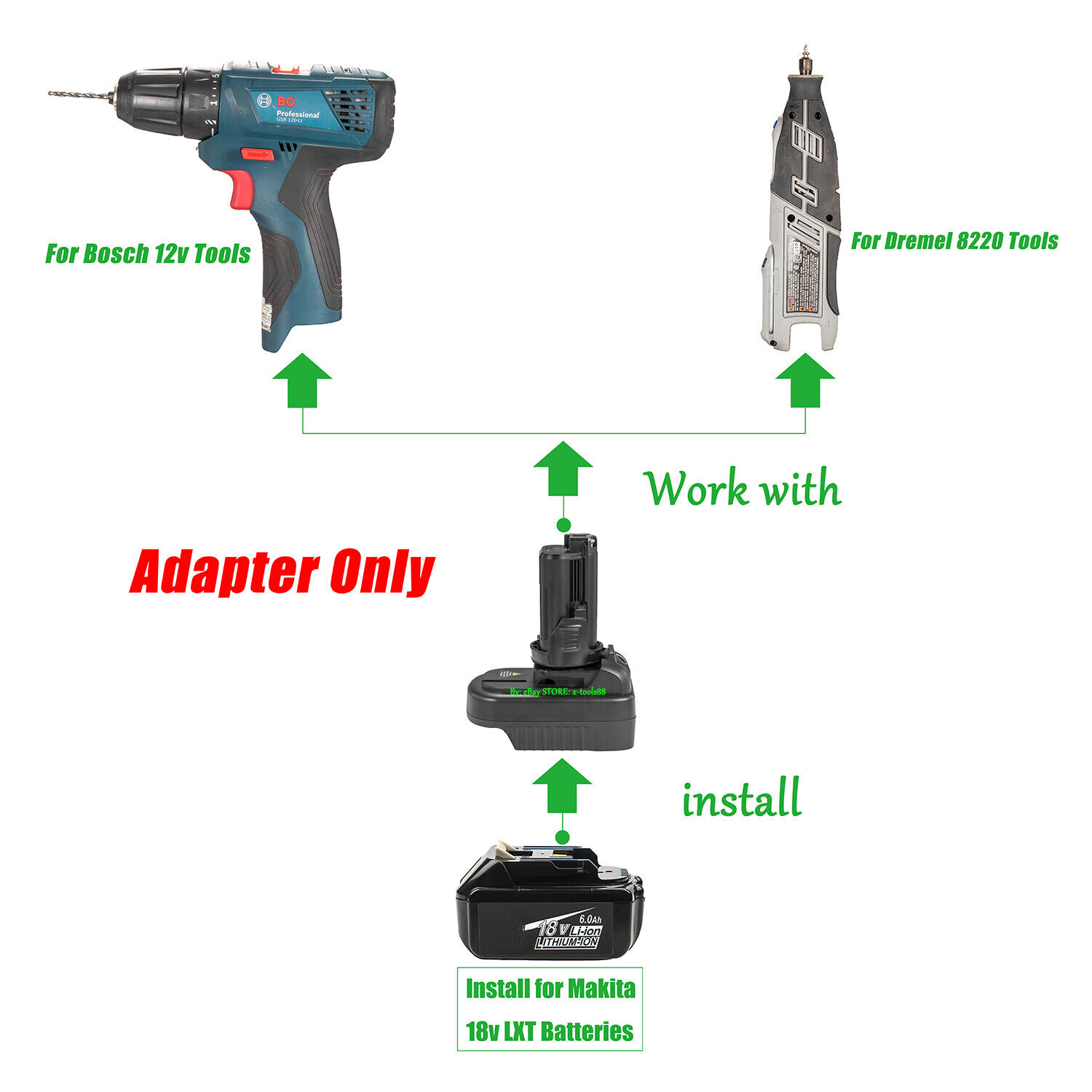 Upgrade for BOSCH 12v and for Dremel 8220 8250 8260 tools with this power tool battery for Makita 18v LXT Li-lon batteries.