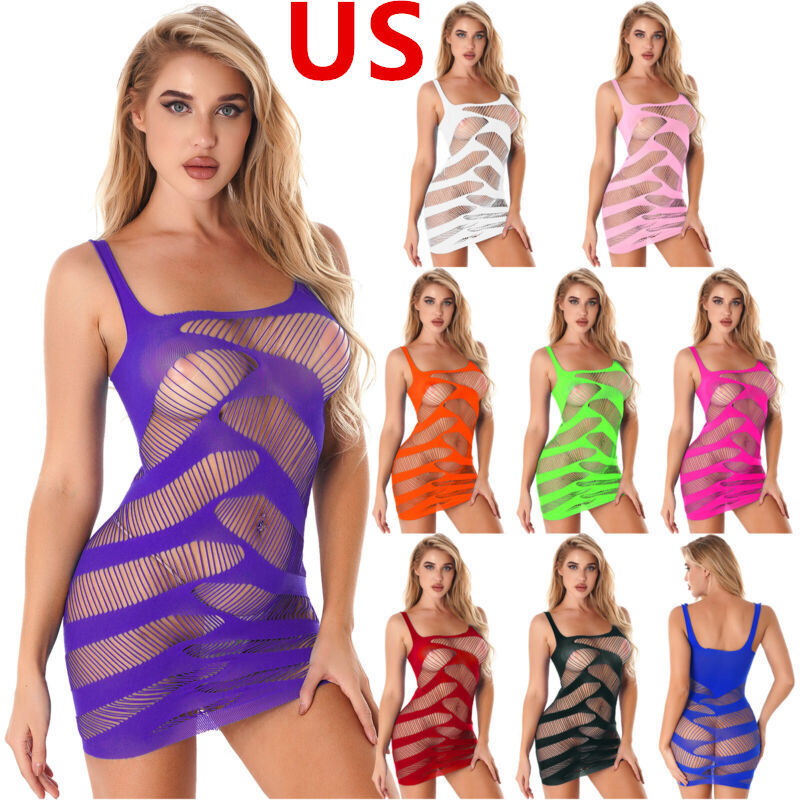 Womens Scoop Neck Wide Shoulder Strap Bodycon Dress Hollow Out Mini Dresses Lingerie Nightwear.