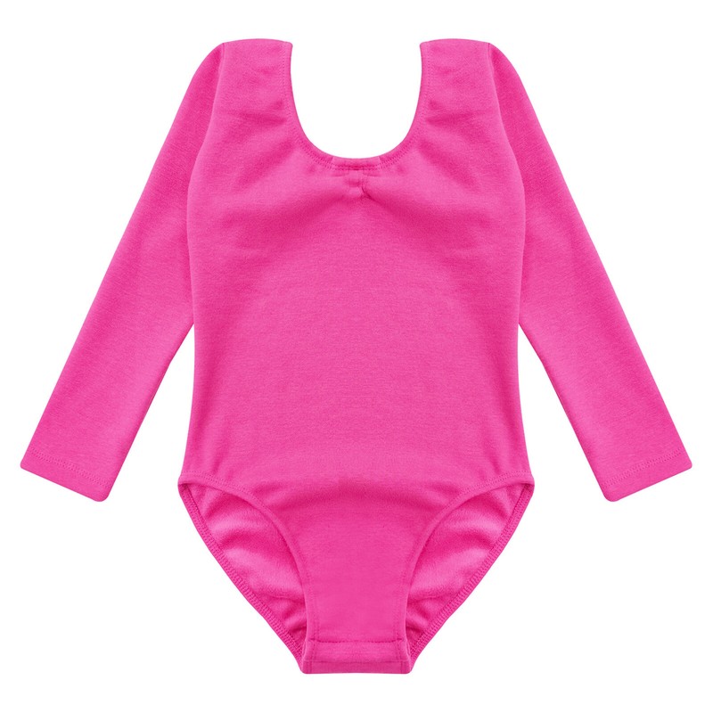 Kids Girls Solid Color Cotton Long Sleeves Press Buttons at Crotch Ballet Leotard.
