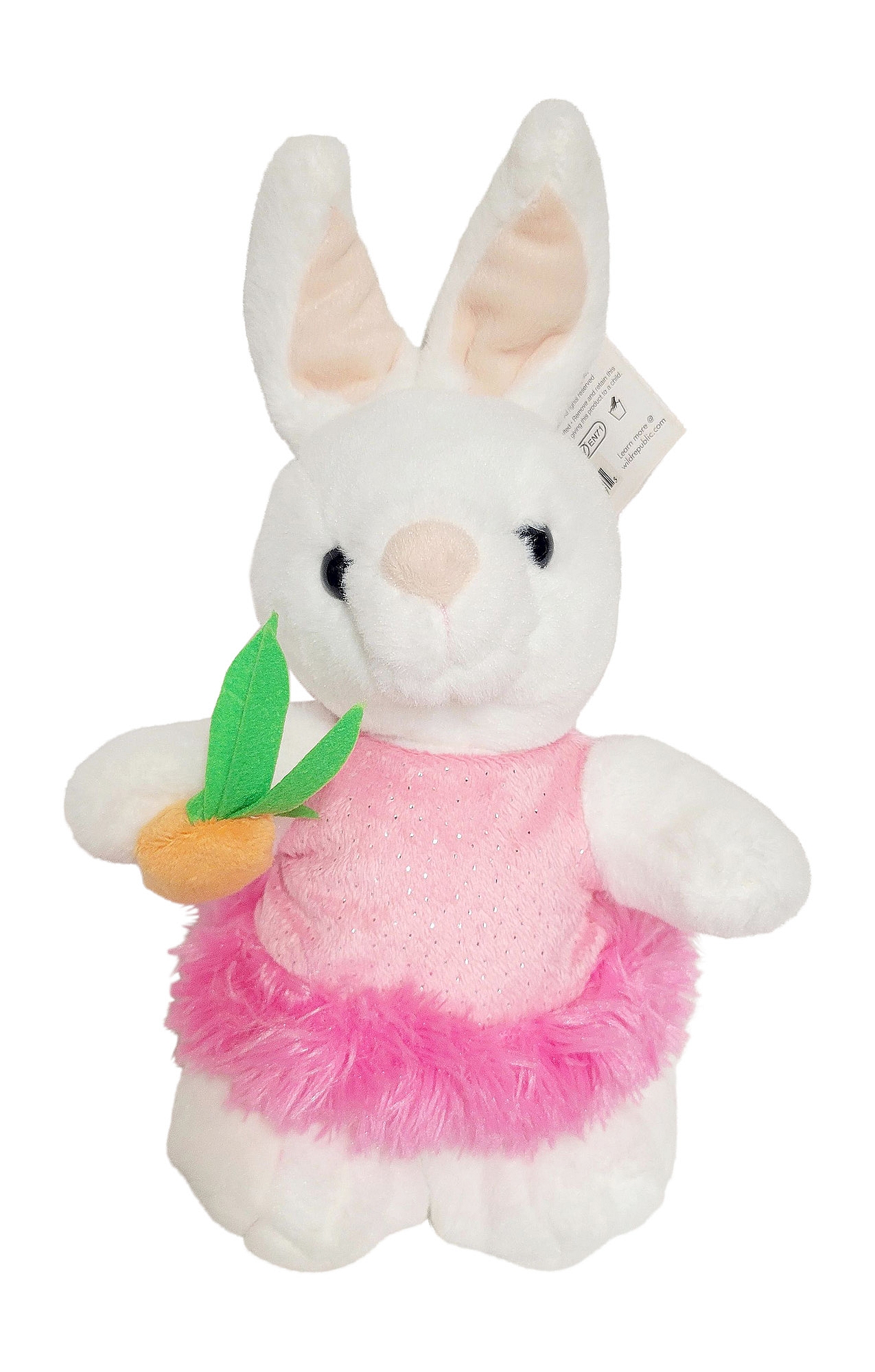 This adorable stuffed bunny is the perfect embodiment of bunny cuteness. It comes with an attached plush carrot and a super cute pink tutu with fringed accent. Made with premium materials, this bunny offers a soft and huggable experience, which makes it perfect for playtime and bedtime snuggles. Whether you're looking for a gift or a cherished addition to your collection, this bunny is sure to bring smiles and warmth to your heart. Choose Wild Republic for quality, adventure, and a world of cuddly fun. Additionally, it features beanies at the bottom for weight and support, and it is crafted using super soft fabrics. This bunny measures approximately 12" in height from the top of its ears to the bottom.