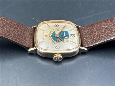 COMMENTS: VERY COOL HAMILTON DRESS WATCH WITH US MILITARY STRATEGIC AIR COMMAND EVENT PROVENANCE . THE WATCH SEEMS A SPECIAL ORDER TO HAMILTON FROM US DEPARTMENT OF DEFENSE FOR THE EVENT WITH THE LOGO SITS RIGHT IN THE MIDDLE WITH A HAMILTON WORD RIGHT BELOW THE SUB SECOND HANDS. THE DIAL IS ALL ORIGINAL AND UNTOUCHED . THE CROWN LEATHER STRAP IS UNSIGED BUT I THINK IT IS BELONG TO THIS WATCH ALSO. THE GOLD FILLED BEZEL IS SLIGHTLY TARNISHED BUT NO SCRATCHES OR WEAR.