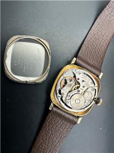 CASE: 10KT GOLD FILLED CASE WITH A STAINLESS STEEL. APPROX 28MM X 33.5mm EXCLUDING THE CROWN.