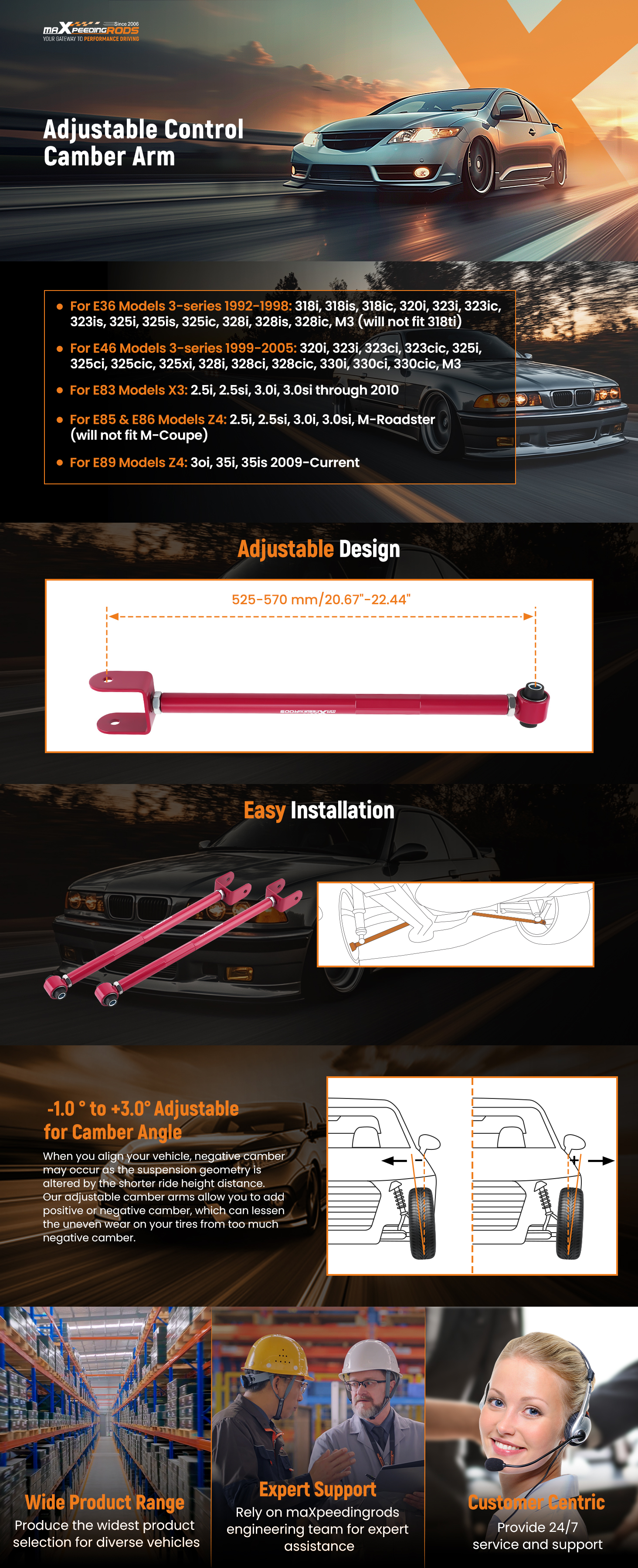 - Corrects Your Camber By Allowing Fine Tuning of Camber Adjustment Settings From -1 to +3 Degrees For Optimal Performance