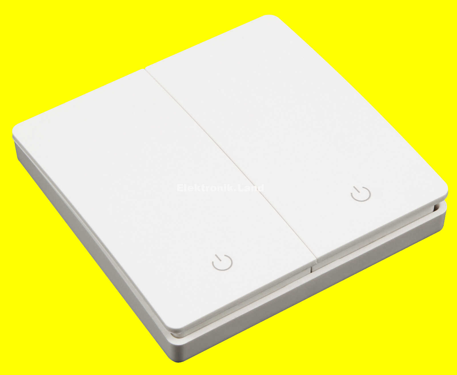 Dieser 2-Kanal Funk-Wandsender der Kinetic-Funkschalter-Serie schaltet bis zu 2 Funk-Empfänger in faszinierend kompaktem Design. Der Wandsender kann alle Empfänger-Komponenten der Kinetic-Serie bedienen.