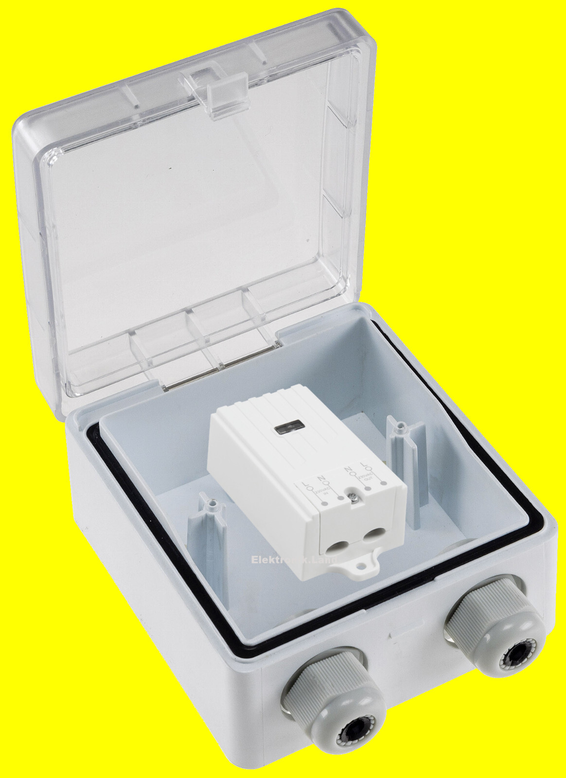 Mit den IP66-Schaltern ist bei den Sendern das Wetterproblem gelöst für den Ausseneinsatz. Doch was ist mit Empfängern? Dafür gibt es unser Wetterschutz-Kunststoffgehäuse mit milchglas-transparentem Deckel, ideal für den wettergeschützten Ausseneinsatz/Aufbewahrung von Kinetic-Empfängern etc.