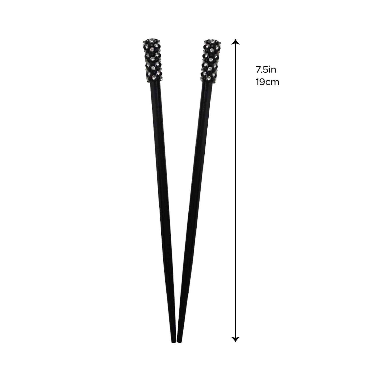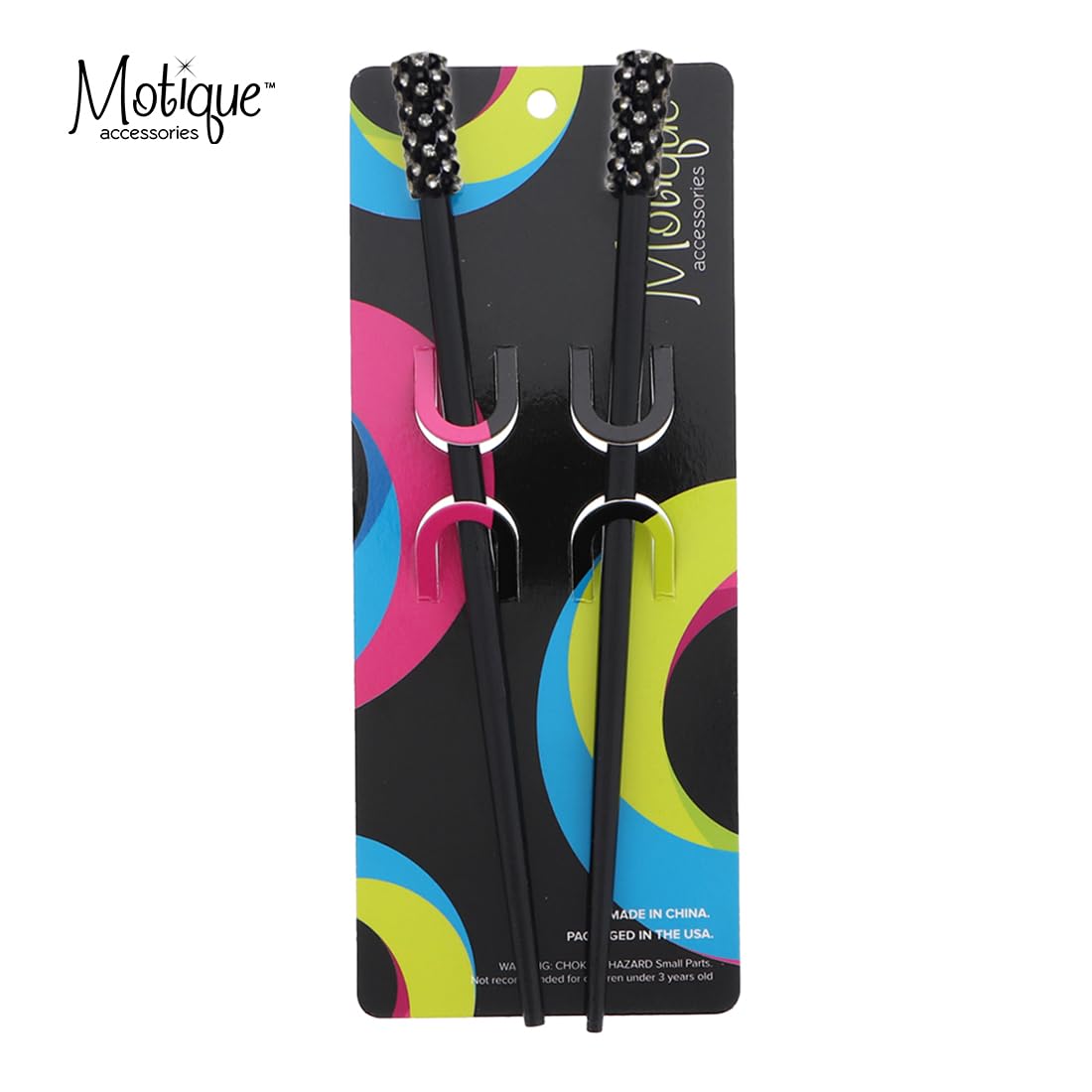 This is a lovely set of two solid hair chopsticks from Motique Accessories that will look great in your hair. Each stick measures 7.5 inches long, and features rings of colored gemstones at the ends. Wear your hair in a variety of styles with this hair accessory, such as buns, twists & more!