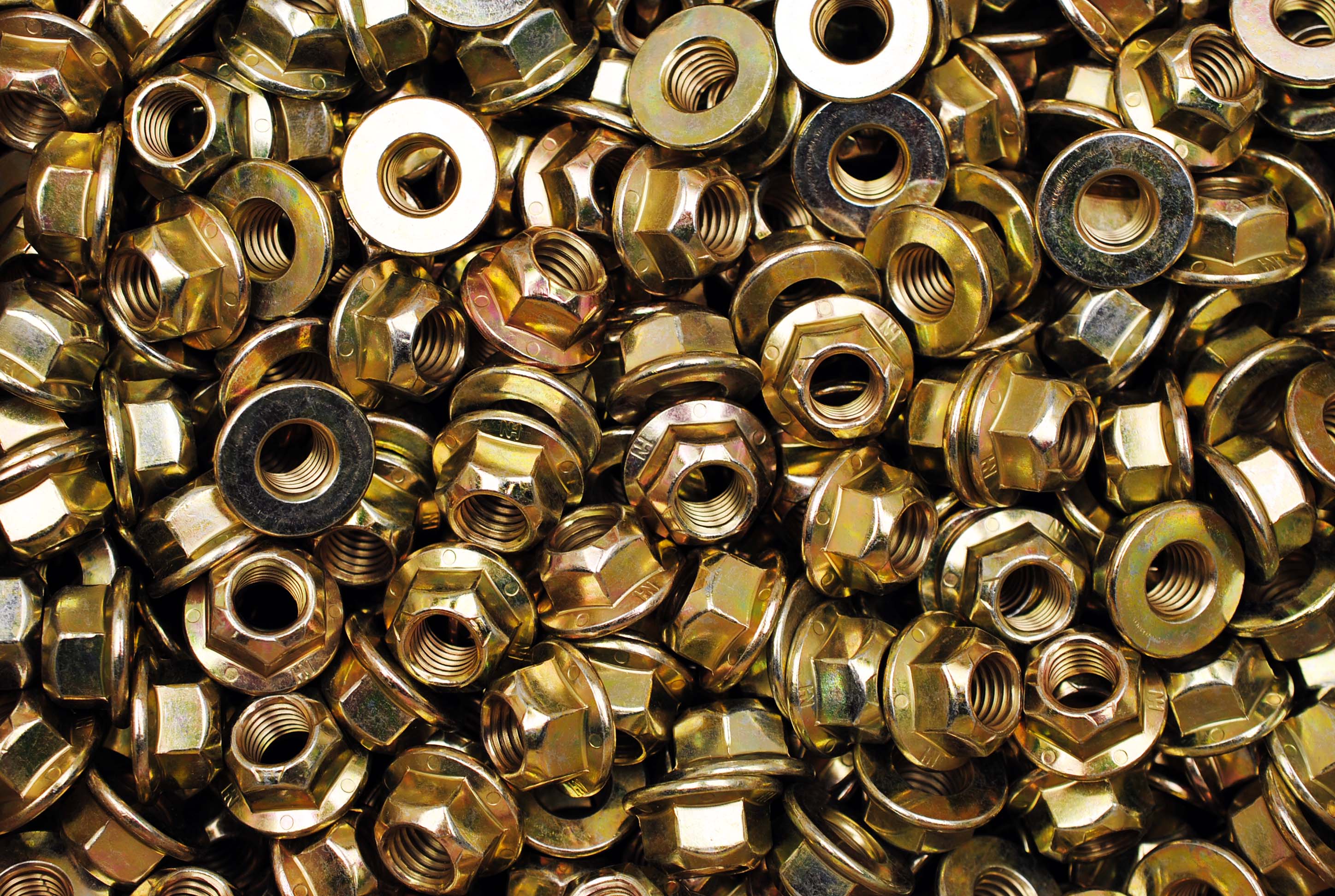 Lot of (65) all metal prevailing torque style top locking flange nuts.