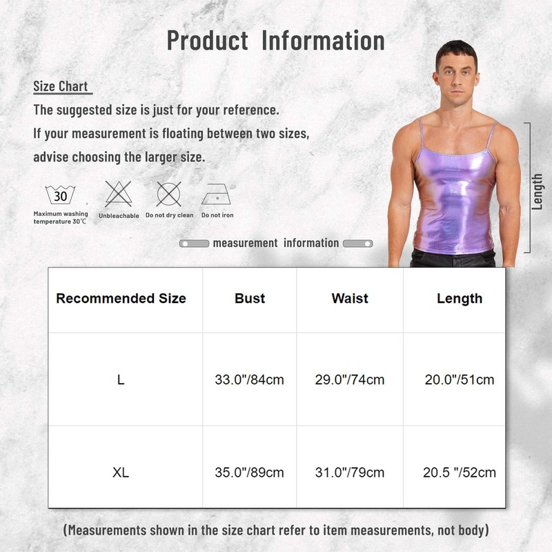 Men’s wetlook metallic vest, good stretchy fabric, soft and comfortable to wear.