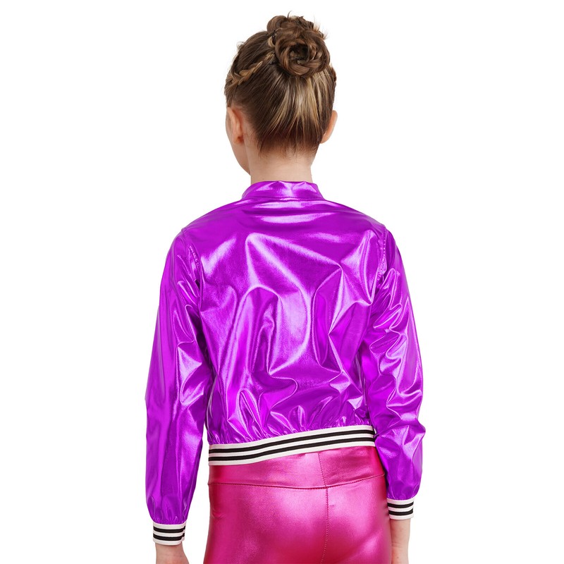 The outerwear with long sleeve and stand collar, shiny bronzing cloth outlook.
