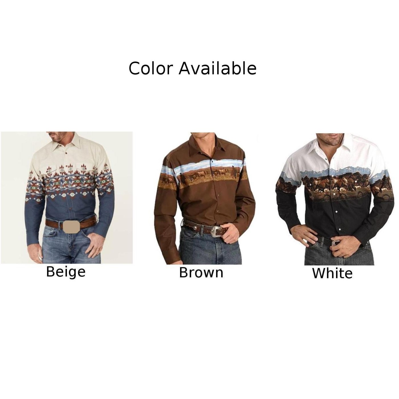 * Item Features:Men,Casual,Button Down,Shirts,Tops,Long Sleeve,Printing,Retro,Vintage, for Western Tribal Ethnic,Outwear,Lapel