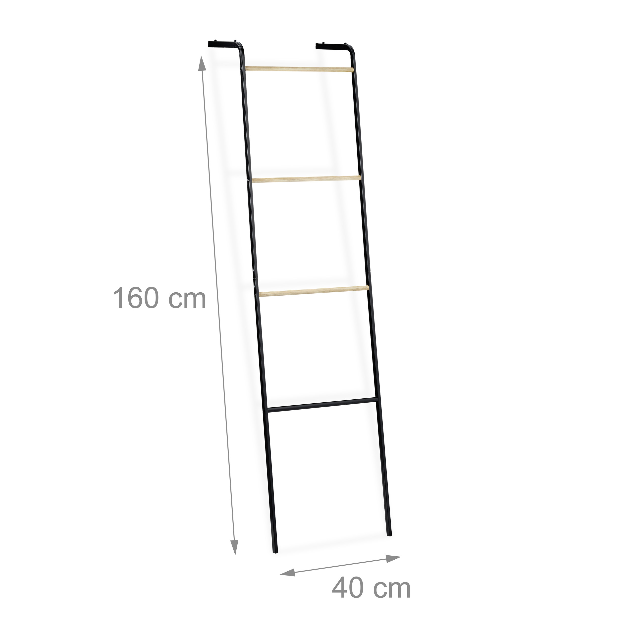 Toallero escalera, Soporte toallas de pie, 4 barras, Toallero baño metal, Negro