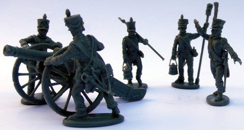 -15 highly detail crew figures with a choice of bicornes to represent artillery from 1804 to 1806 or covered and uncovered shakos for line artillery from 1806 to 1812.