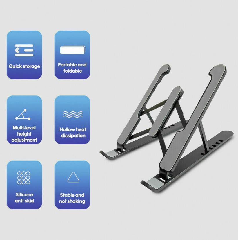 COMPACT and PORTABLE: Creative portable foldable design, the laptop stand can be folded to the size of 9.4*1.7 inches and with the portable storage bag to make it easy carry-on.