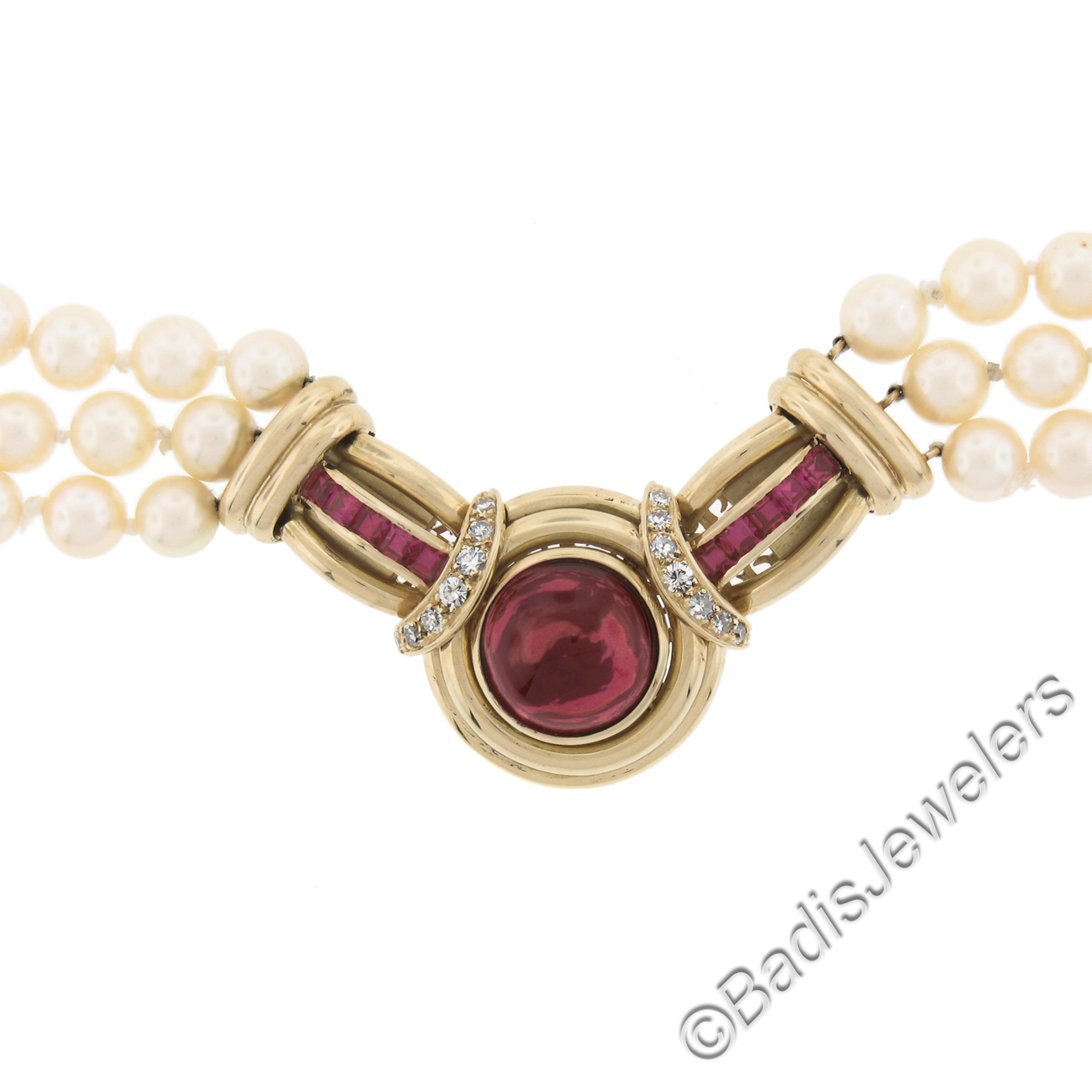 Type: 3-Row Pearl Strand Necklace w/ Gold Clasp Center Piece