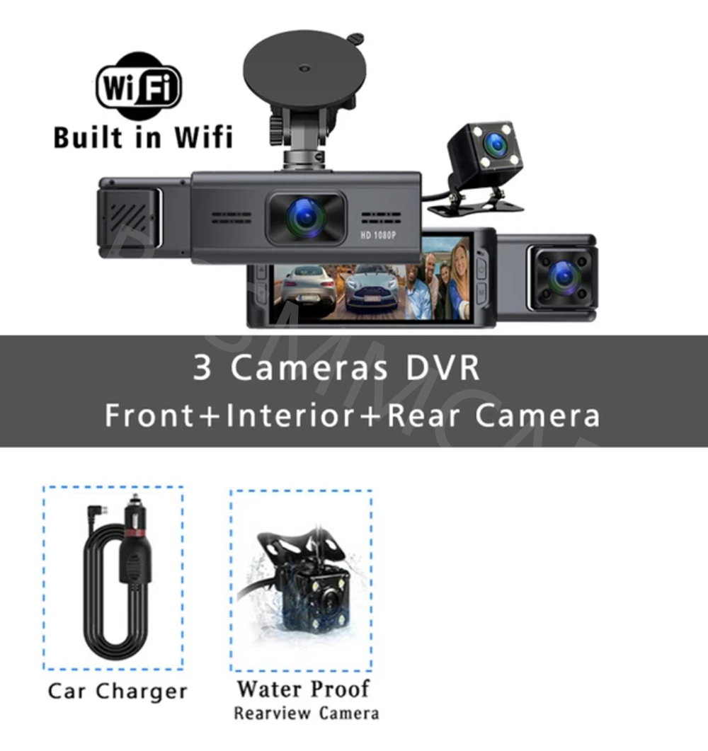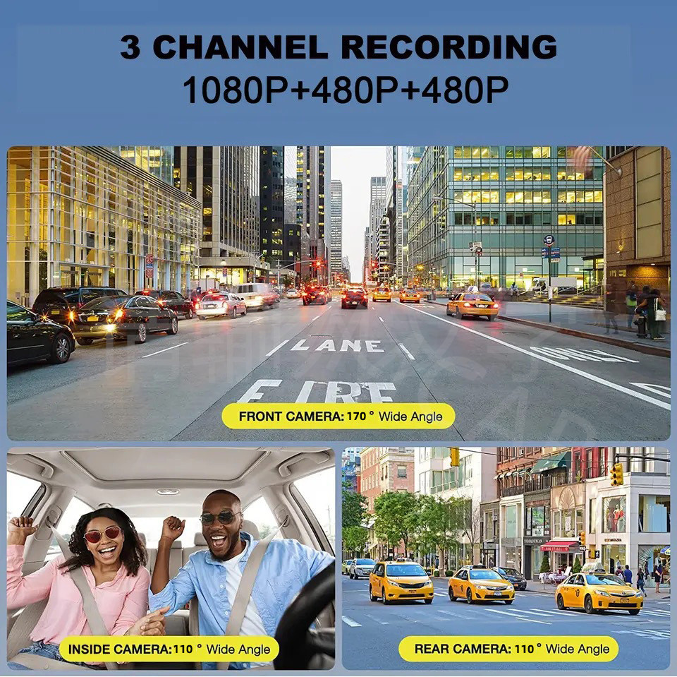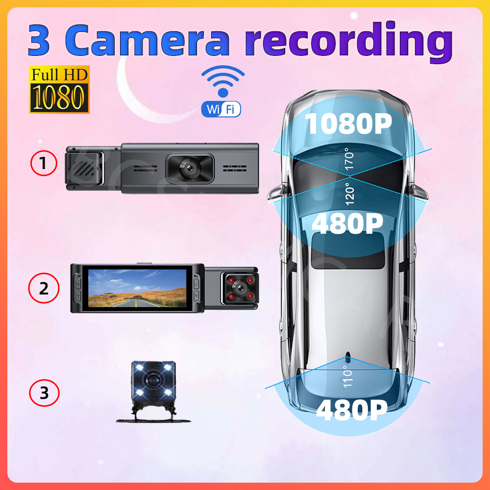 Wifi 3 Channel Car DVR 1080P Dash Camera Three Lens Dashcam Vehicle Video Dash Cam Drive Recorder Interior Mini DVR