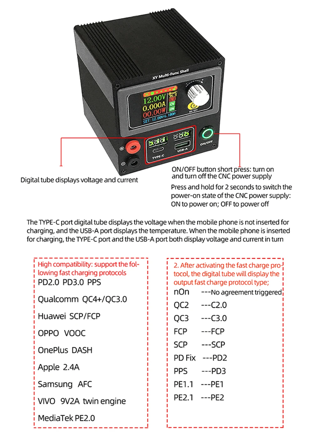 3. The shell is equipped with fast charging board, with full agreement mobile phone fast charging, convenient for various DIY modifications.