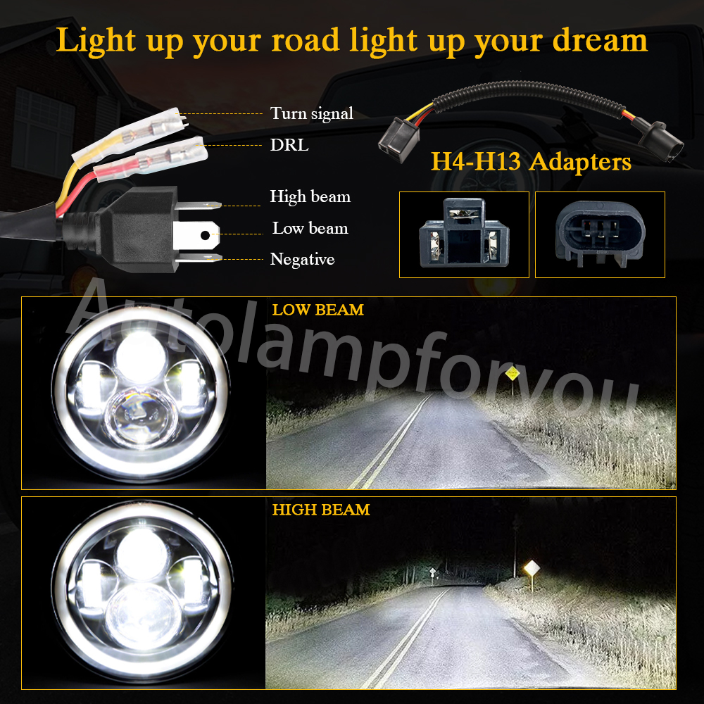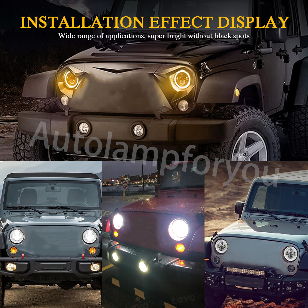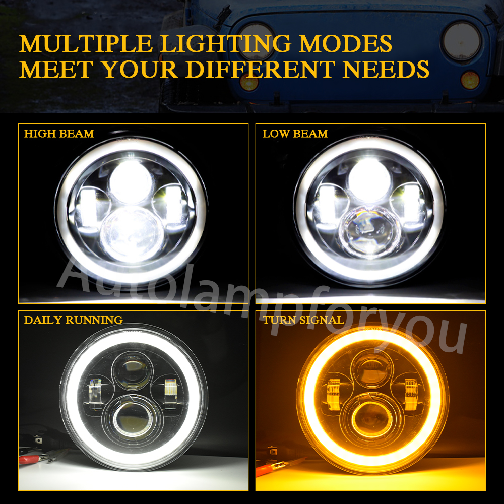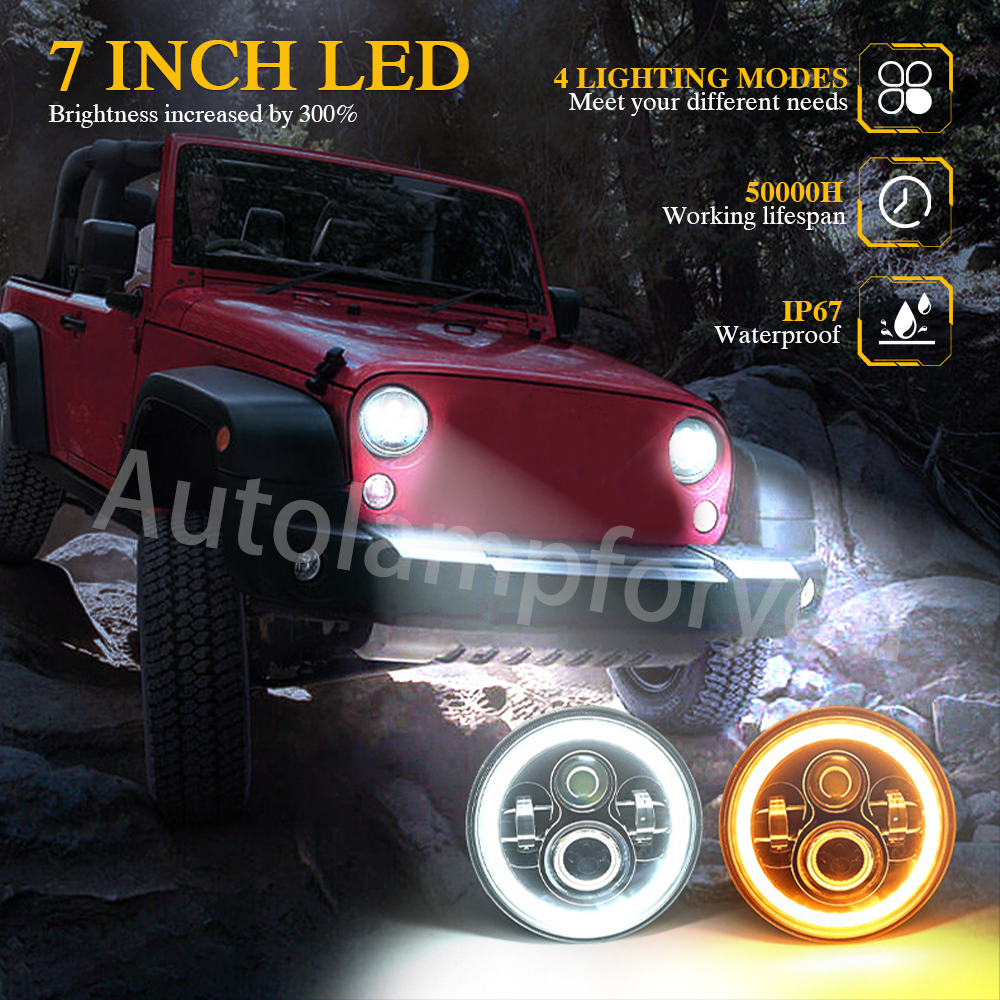-7 inch LED Headlights is multi-functional; the halo of it comes in two colors: white or amber. Amber is for turn signal; white is for DRL.