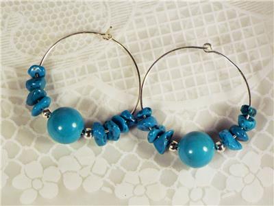 Cynthia Lynn "SAN JOSE" Blue Green Turquoise Beaded Silver Hoop Earrings 1.25 inch