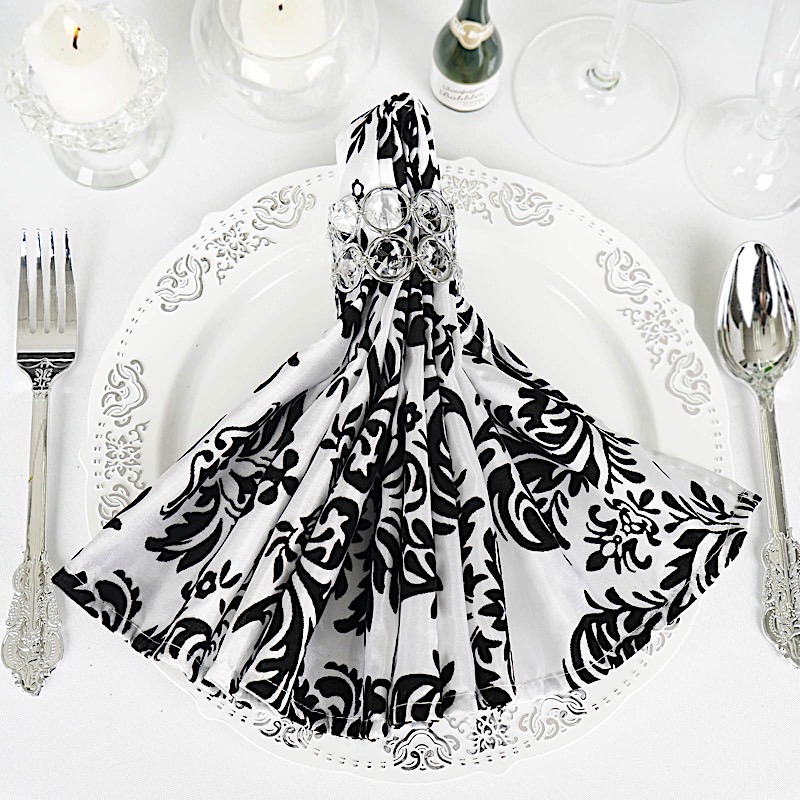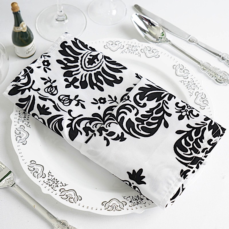 25 pcs Black White 20x20" FLOCKING TABLE NAPKINS.