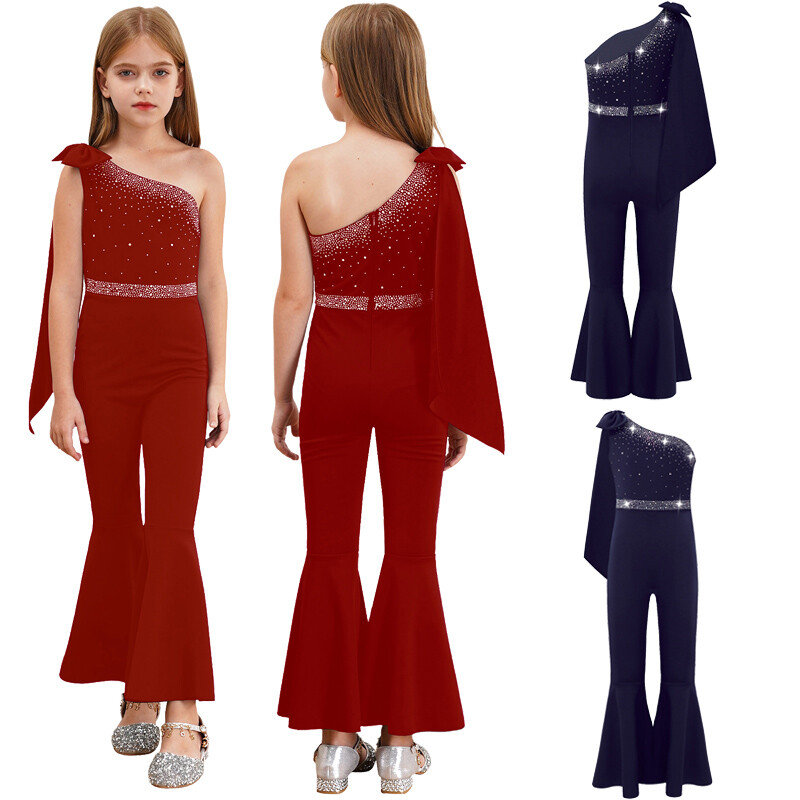 Kids Girls Gymnastics Jumpsuit Bodysuit Stretch Ballet Yoga Leotard RhinestonesUSD 8.49