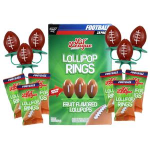 - Crafted with premium ingredients and individually wrapped for freshness and convenience, these lollipop rings offer a safe and delicious option for all to savor. Whether you're organizing a football-themed gathering or simply seeking a fun treat, our Football Lollipop Rings are guaranteed to be a crowd-pleaser.