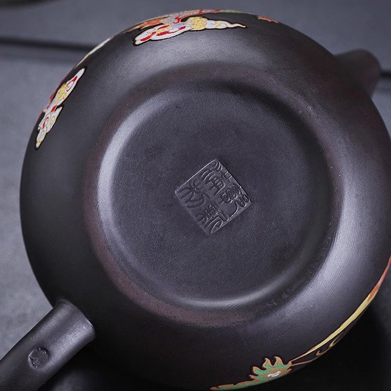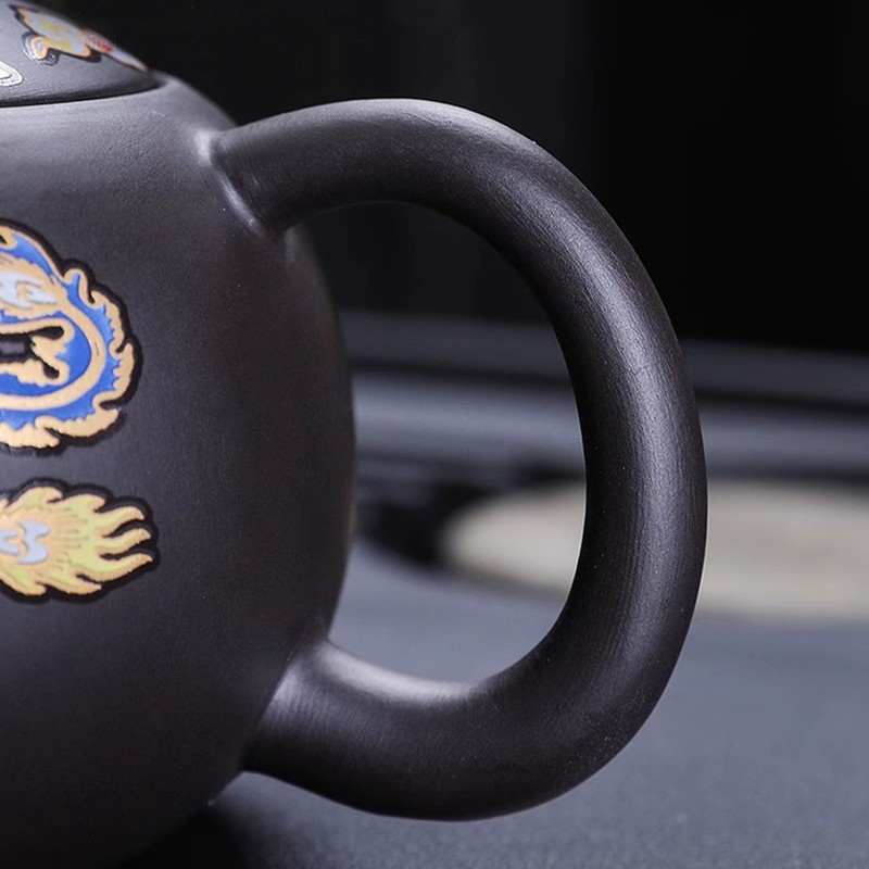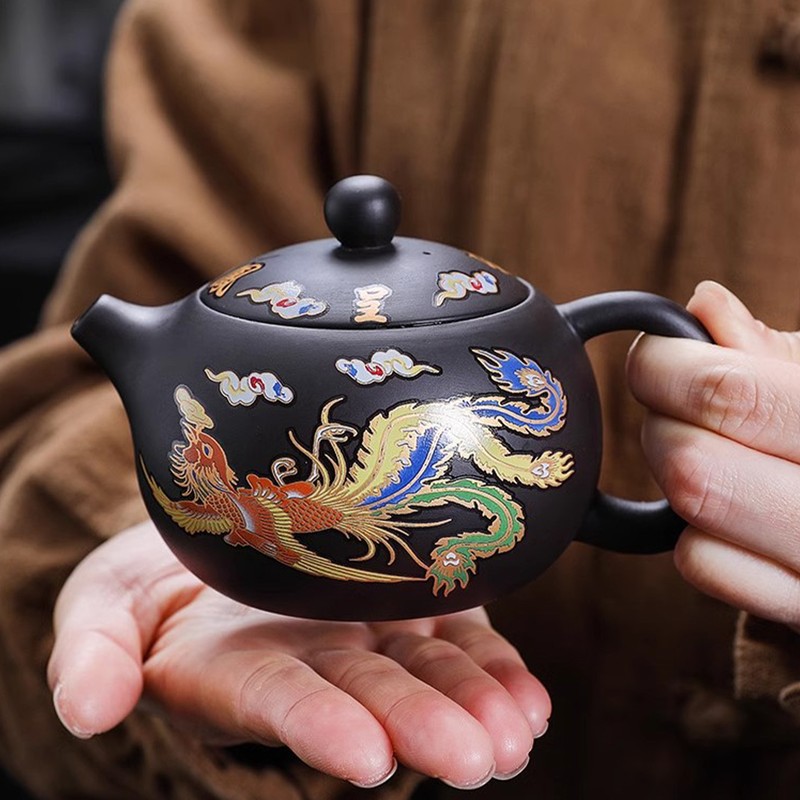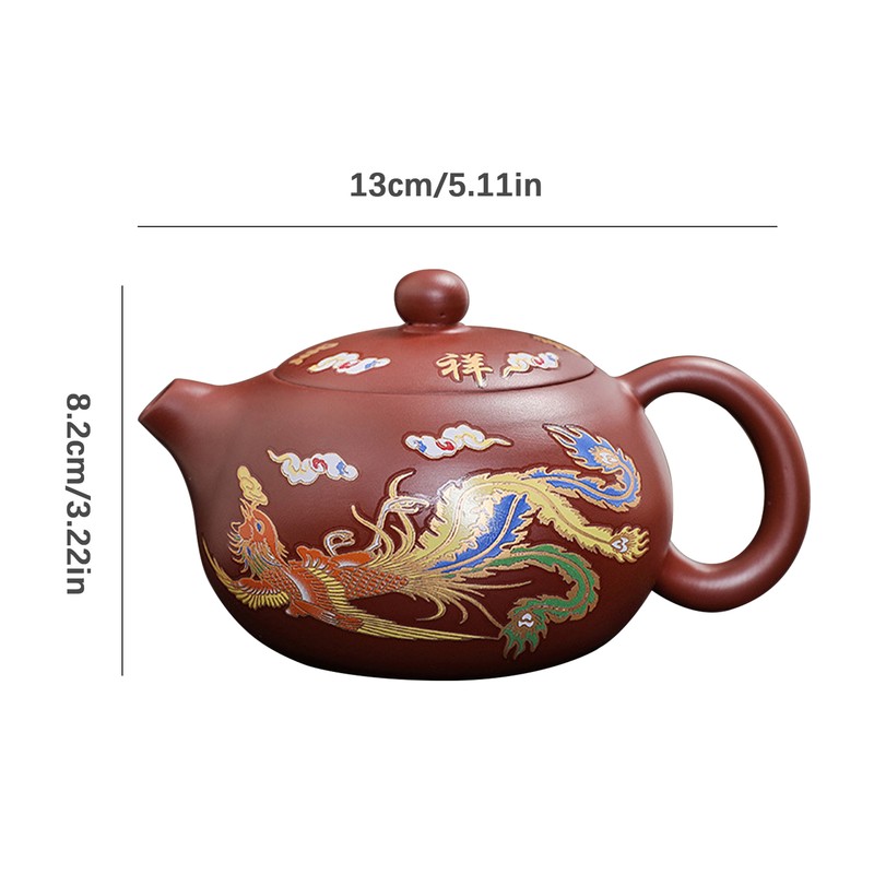 This culturally significant dragon and phoenix teapot is carefully crafted and produces a stunning color-changing effect when exposed to heat. Not only strong and sturdy, but also comfortable to hold and with stable pouring. Perfect for any tea lover or collector.