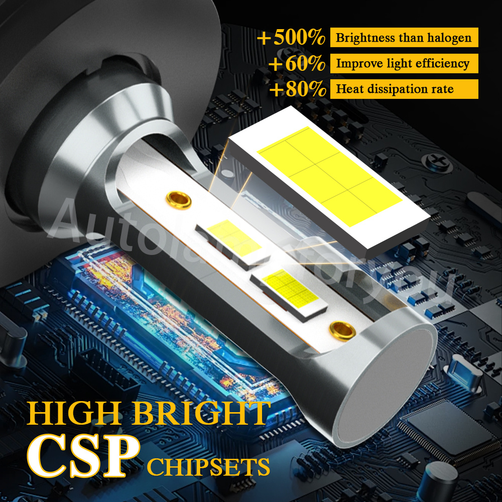 2. Latest 2-side CSP LED light source, super bright without blind zone.