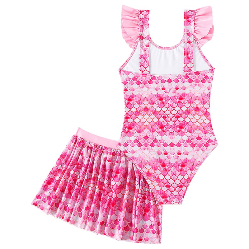 2Pcs of swimsuit and swim skirt for girls, vibrant fish scales print make girls fashion and beautiful.
