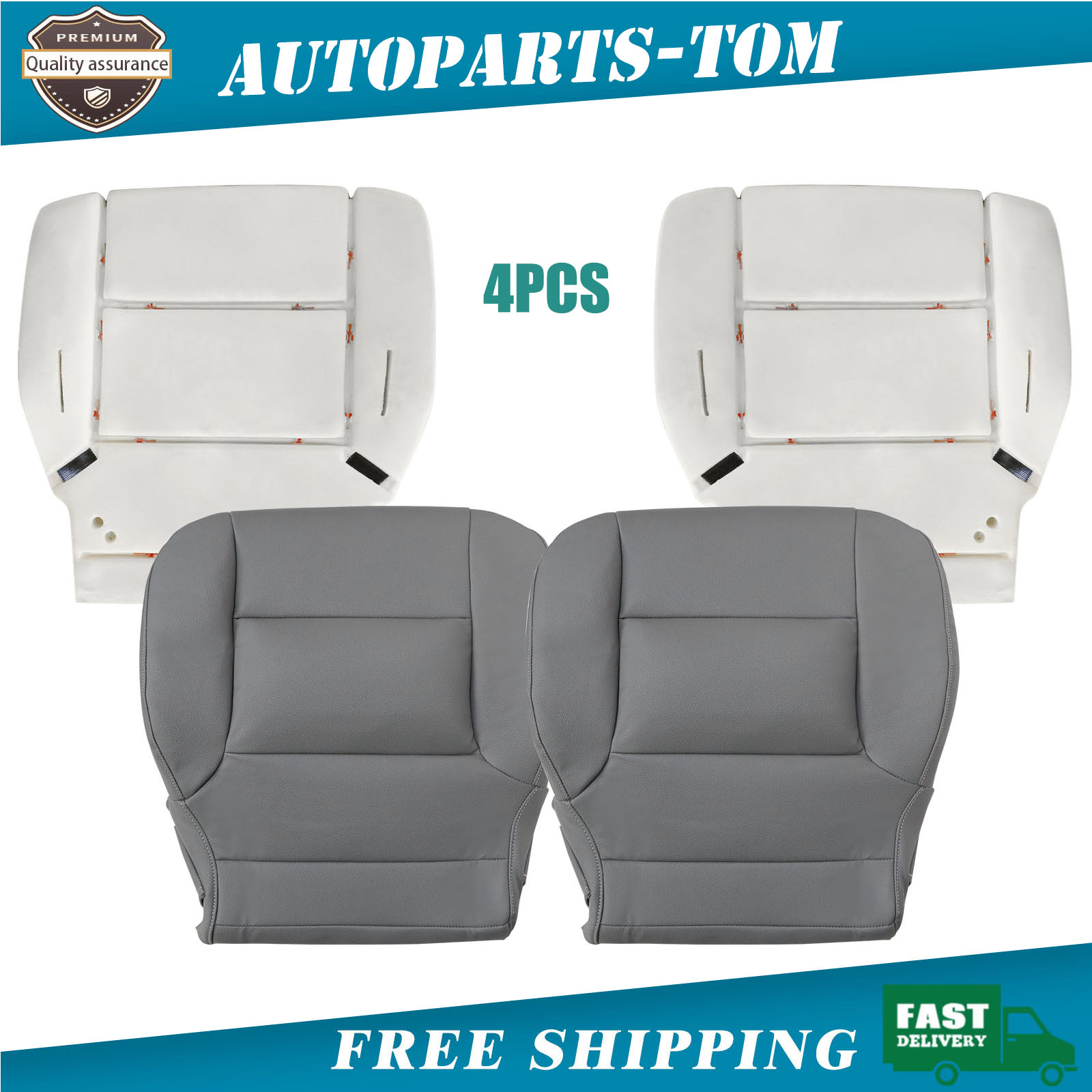 Name: Driver & Passenger Side Replacement Leather Bottom Seat Cover & Foam Cushion