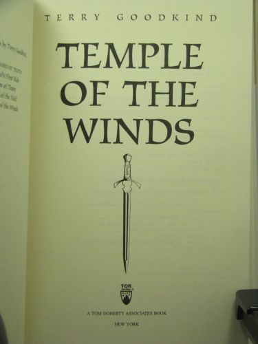 From the flaps: ...Everything Richard has learned thus far, all the wisdom, the magic, and the conviction he holds, will be for naught as the power-mad Emperor Jagang returns with his multitude of demonic underlings. For Richard must now challenge the impossible: the magic that thwarts magic, the three-thousand-years-sealed-away fortress of evil that has begun to infect the world with a terrible, sorcerous plague. He must find the Temple of the Winds.