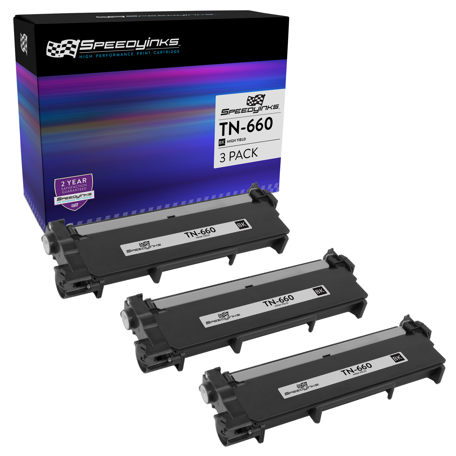 Save even more with our set of 3 compatible cartridges. This set includes 2 TN660 High Yield Black Toner Cartridges and 1 DR630 Drum Unit. Why pay more for brand name Brother TN660/DR630 cartridge when our compatible printer supplies deliver excellent quality results for a fraction of the price? This set works in the following Brother DCP, HL, and MFC Printers: L2520DW, L2540DW, L2300D, L2320D, L2340DW, L2360DW, L2380DW, L2700DW, L2705DW, L2707DW, L2720DW, and L2740DW. Please note, retail packaging may vary, and this item will only work with printers purchased within the United States and Canada. Brother does not manufacture our compatible toner cartridges. Brother is a registered trademark of Brother Industries, Ltd. and is not affiliated with and does not endorse SPEEDYINKS. We are the exclusive reseller of SPEEDYINKS brand of high quality printing supplies.