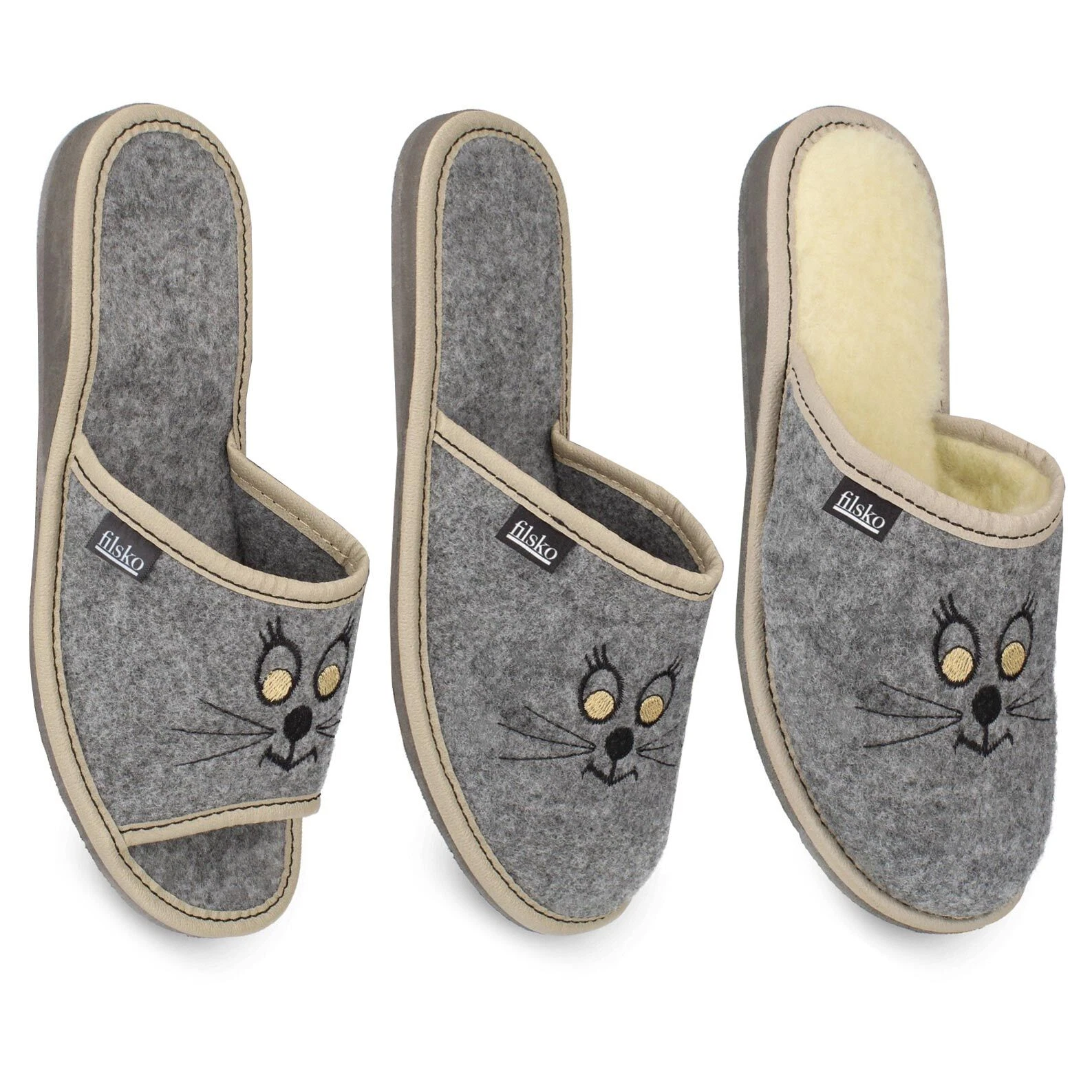 😼 Schick & Bequem: Der Filzhausschuh besitzt ein süßes Katzengesicht und ist in verschiedenen Ausführungen erhältlich. Dank der EVA-Sohle ist der Slipper noch bequemer.