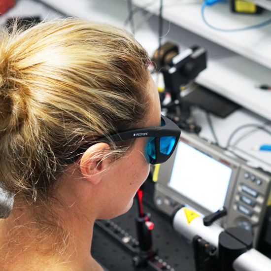 Beim Arbeiten mit Lasersystemen der Laserklasse 3R und höher können schwerwiegende Schäden am menschlichen Auge entstehen. Das menschliche Auge kann durch direkte oder indirekte Lasereinstrahlung dauerhaft geschädigt werden. Verletzungen auf der Netzhaut ereignen sich zumeist im Bereich von 400-1400nm, während sich Defekte auf Hornhaut oder Linse sich im UV Bereich abspielen (190-400nm). Deswegen ist es unerlässlich mit Hilfe einer passenden Laserschutzbrille die Augen entsprechend zu schützen. Die nach gültiger Norm DIN EN 207 (Vollschutz) zertifizierte Laserschutzbrille erfüllt die gesetzlichen Vorschriften und schützt die Augen sicher vor gefährlicher Laserstrahlung. Laserschutzbrillen und die darin enthaltenen Filter sind so konzipiert, dass sie die spezifische Energie des Lasers absorbieren. Daher muss die optimale Schutzbrille explizit für den benötigten Wellenlängenbereich, den Strahlungsspitzenwert und der benötigten optischen Dichte ausgewählt werden. Natürlich spielen auch die Tageslichttransmission, das Gesichtsfeld sowie der Tragekomfort des Rahmens eine entscheidende Rolle. Die Fassung der Laserschutzbrille verhindert ein seitliches Eindringen des Laserstrahls. ● Wellenlänge: 180-315nm, Schutzstufen D LB6 + R LB4 ● Wellenlänge: >315-400nm, Schutzstufe DR LB4 ● Wellenlänge: >615-660nm, Schutzstufe DIR LB3 ● Wellenlänge: >660-665nm, Schutzstufe DIR LB4 ● Wellenlänge: >665-715nm, Schutzstufen D LB4 + IR LB5 ● Wellenlänge: 694nm, Schutzstufe IR LB7 Besonders geeignet für: Laser ULTRAVIOLETT 180nm und ROT 660nm Geeignet zum Laserschweißen, Laserschneiden, Lasermarkieren, Forschung und Entwicklung oder auch für kosmetische Anwendungen (Bitte Wellenlängenbereich beachten!)